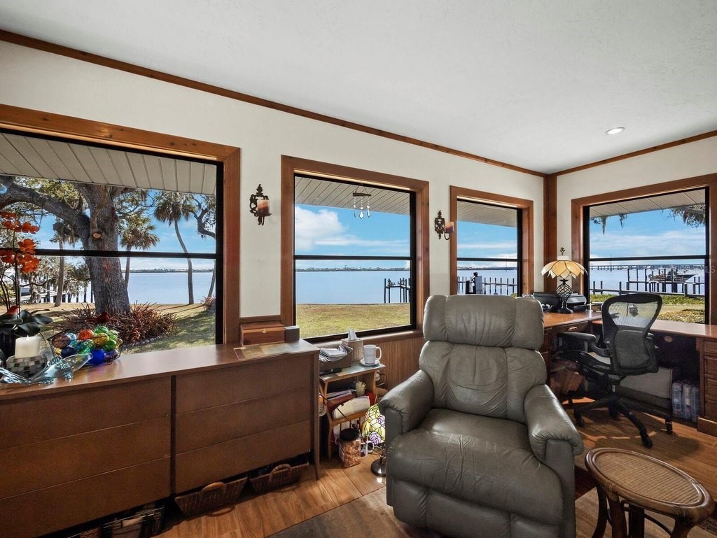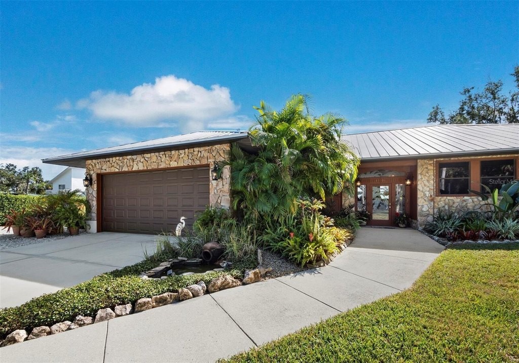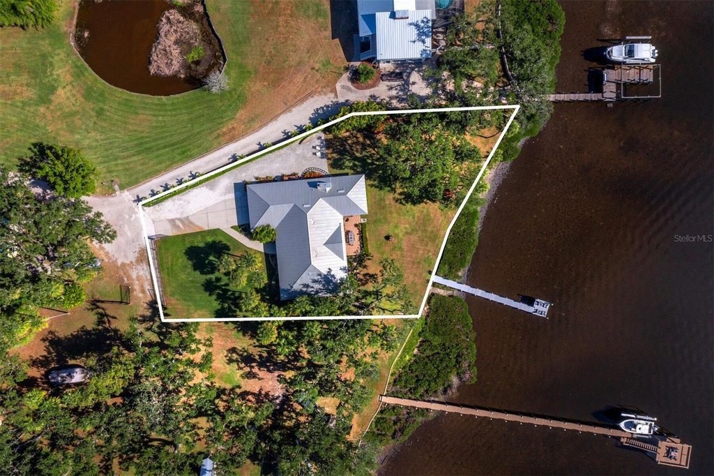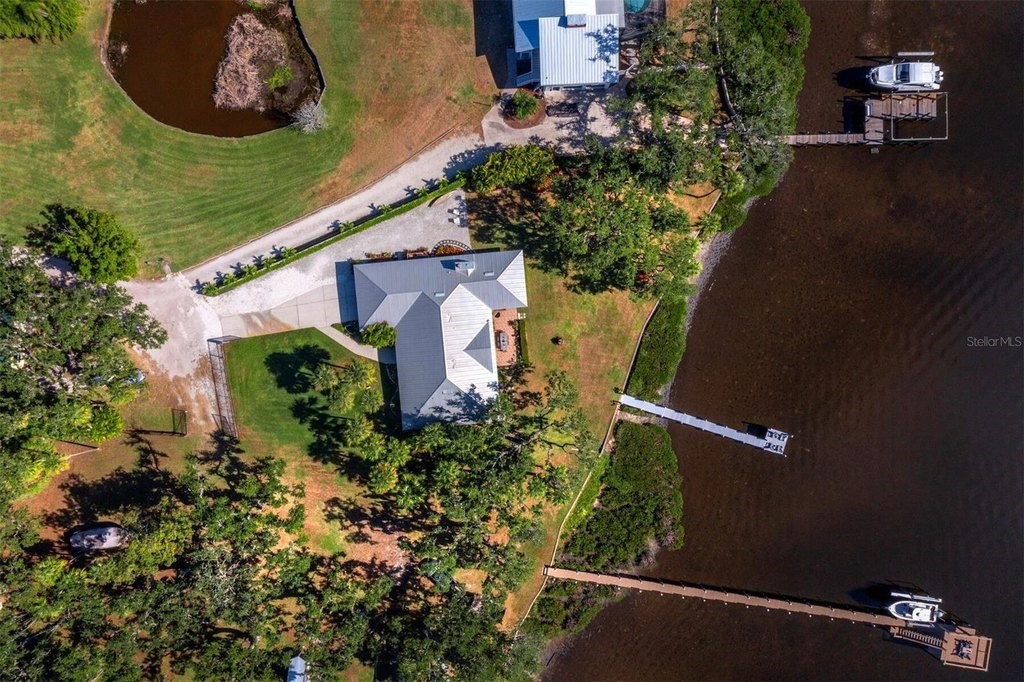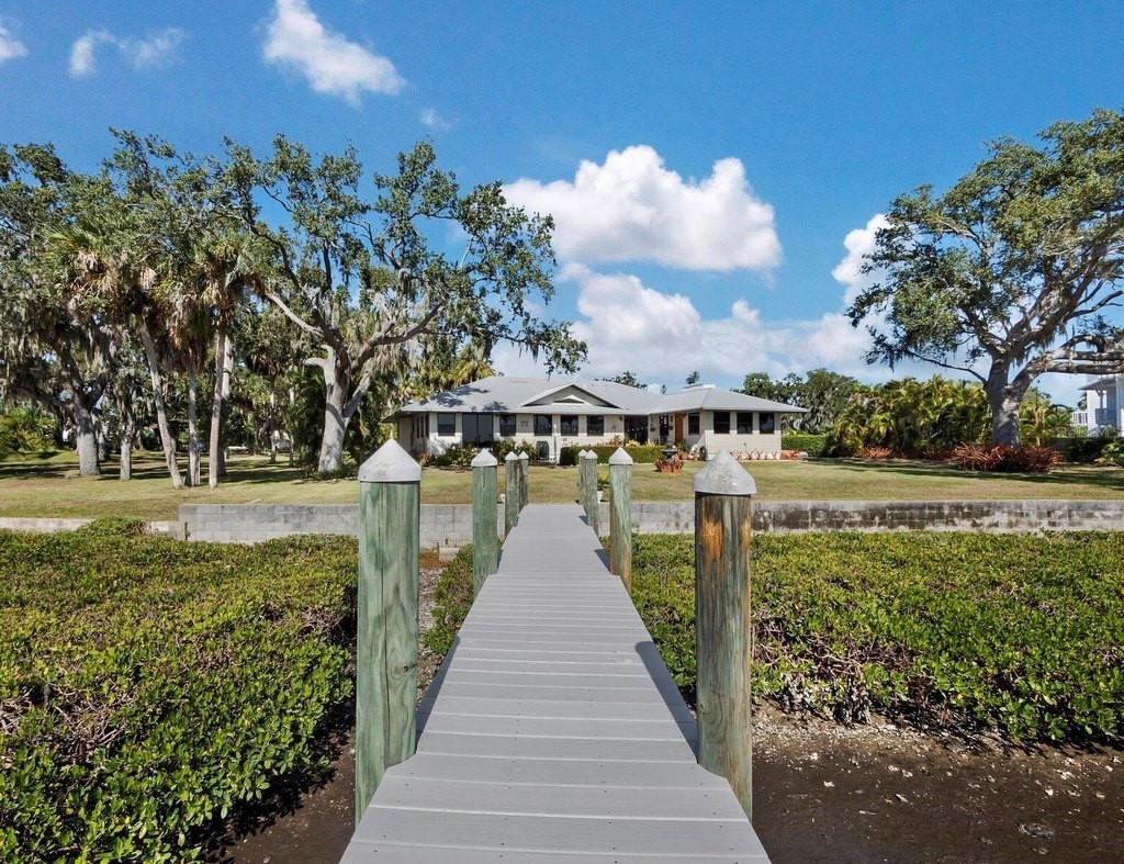 A rare offering of a 3 bedroom, 2 bath home situated on over half an acre of a tree lined oasis on the open river!! Can you just imagine waking to this view every day?! This idyllic setting invites peace and serenity, making it a perfect retreat from the bustle of everyday life. It is tucked away down a private road and yet you are just a short easy drive to I-75, and to multiple restaurants, shopping, and entertainment. Meticulously maintained, this home offers gorgeous views from almost every room. As you enter up the interior steps, you are immediately greeted with a large open front room and three large windows open to the amazing views. A beautiful formal dining area sits to your left. The home is over 2400 square feet and allows a family to spread out and have their own space or to come together in comfort in the large eat in kitchen that opens to the great room. Multiple areas are here to enjoy the stunning view…..a breakfast bar, a cozy spot in front of the stone fireplace, another dining table with sliders out to the riverfront patio….and green space surrounded by lush gardens and stately trees before you even step out on the long dock which ends in a deck you may never want to leave. Come and see this true Florida oasis and experience the joys of riverfront living for yourself.